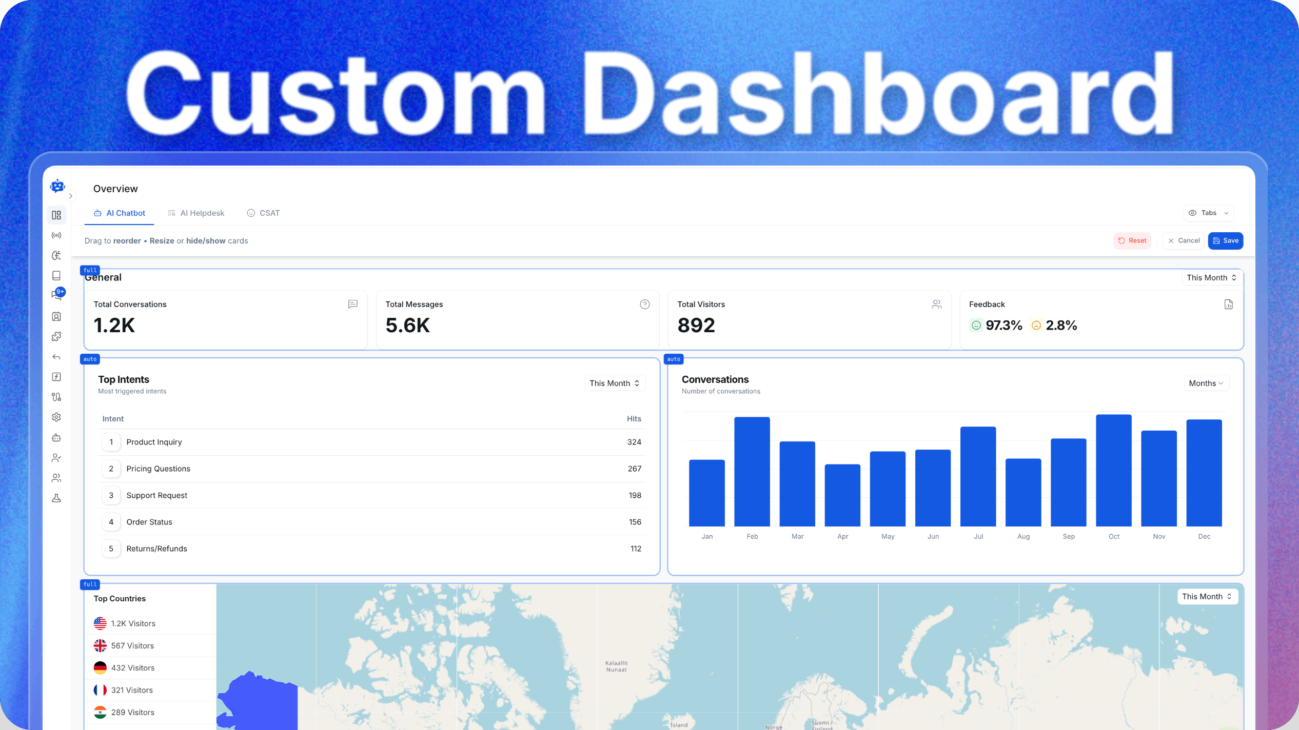 - Get a monthly email recap of your AI agents' performance, including conversations handled, response quality, and time saved.